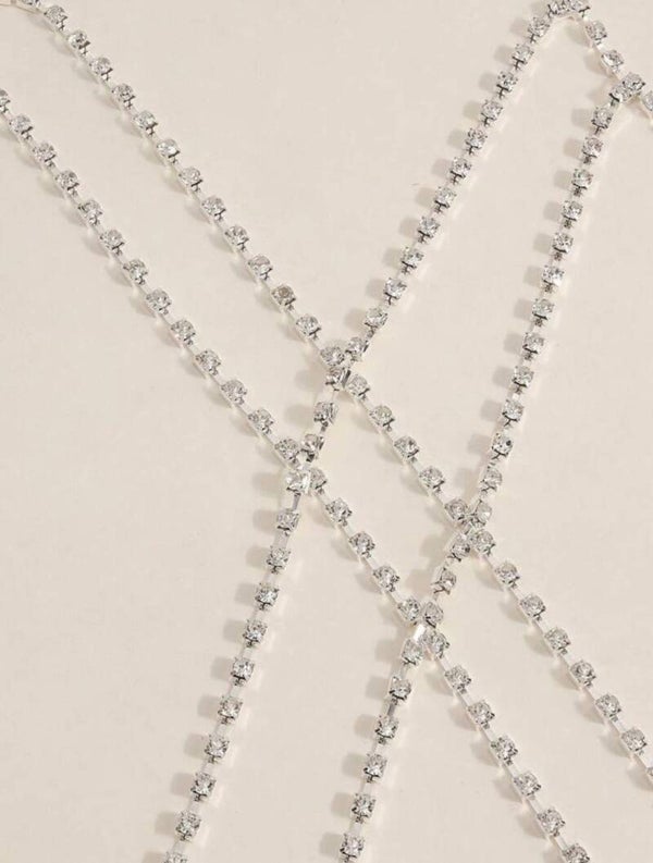 Ensemble bikini avec chaîne de corps croisée et cache-tétons sexy ajourés en argent, convenant pour les sous-vêtements sexy d'Halloween, les mariages, les fêtes, les boîtes de nuit ou le port quotidien, les raves en argent